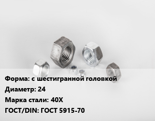 Гайка с шестигранной головкой D=24 Сталь: 40Х ГОСТ 5915-70, кг, 10,8, по запросу цена от 264.98 ₽ / кг, где купить, условия доставки в Краснодаре и Краснодарской области