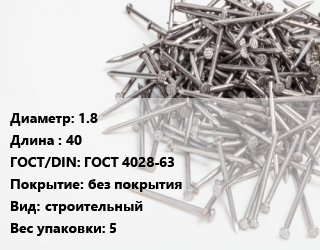 Гвоздь 1.8х40 ГОСТ: ГОСТ 4028-63 без покрытия строительный 5