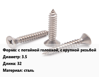 Саморез с потайной головкой, с крупной резьбой D=3.5 L=32 сталь