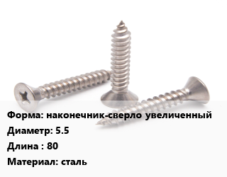Саморез наконечник-сверло увеличенный D=5.5 L=80 сталь