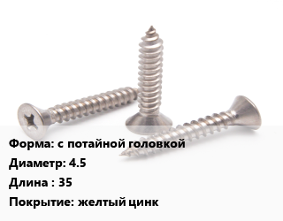 Саморез с потайной головкой D=4.5 L=35 желтый цинк, упаковка 7500 шт цена от 3 154 ₽ / кг, где купить, условия доставки в Краснодаре и Краснодарской области