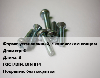 Винт установочный, с коническим концом 6х8 DIN 914 без покрытия