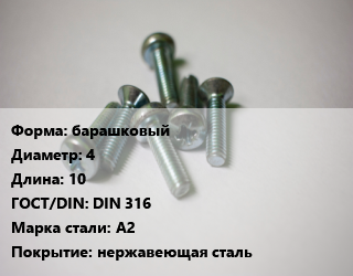 Винт барашковый 4х10 DIN 316 Сталь: А2 нержавеющая сталь, цена за шт, кг цена от 50.4 ₽ / кг, где купить, условия доставки в Краснодаре и Краснодарской области