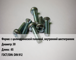 Винт с цилиндрической головкой, внутренний шестигранник 30х65 DIN 912