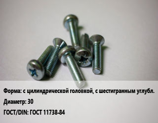 Винт с цилиндрической головкой, с шестигранным углубл. 30 ГОСТ 11738-84