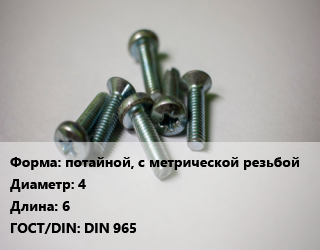 Винт потайной, с метрической резьбой 4х6 DIN 965