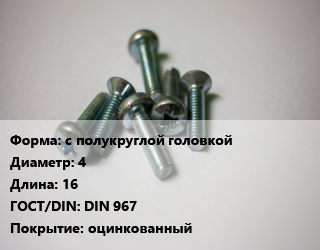 Винт с полукруглой головкой 4х16 DIN 967 оцинкованный, кг цена от 468.13 ₽ / кг, где купить, условия доставки в Краснодаре и Краснодарской области