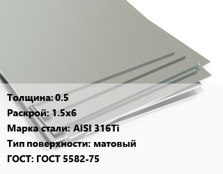 Лист нержавеющий 0.5 1.5х6 Сталь: AISI 316Ti Тип:матовый ГОСТ 5582-75