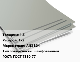 Лист нержавеющий 1.5 1х2 Сталь: AISI 304 Тип:шлифованный ГОСТ 7350-77 цена от 302 048 ₽ / т, где купить, условия доставки в Краснодаре и Краснодарской области