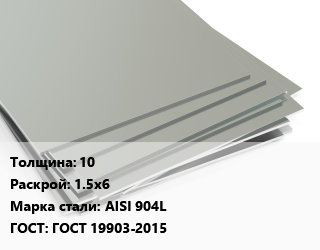 Лист нержавеющий 10 1.5х6 Сталь: AISI 904L ГОСТ 19903-2015
